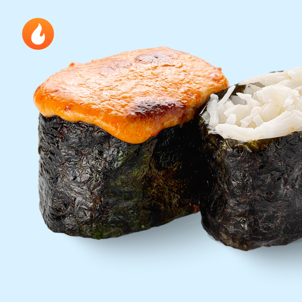 Рис, мицукан, сахар, комбу, соль, нори, снежный краб, сыр гауда, майонез, паста кимчи