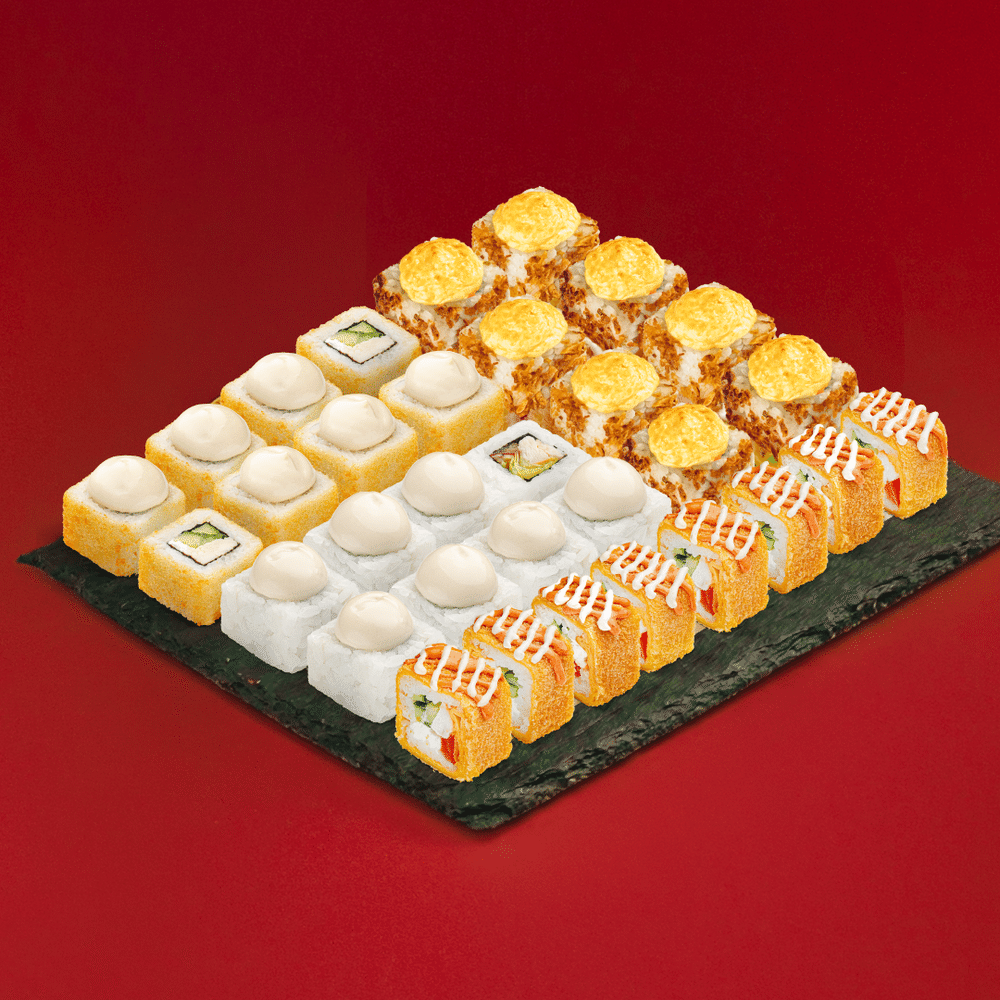 По-японски — патриот. Набор для верных своим принципам: должно быть много, вкусно и с мясом. Состав: Цезарь BIG, Цезарь темпура, Цезерь, Запеченный с жареным лососем.