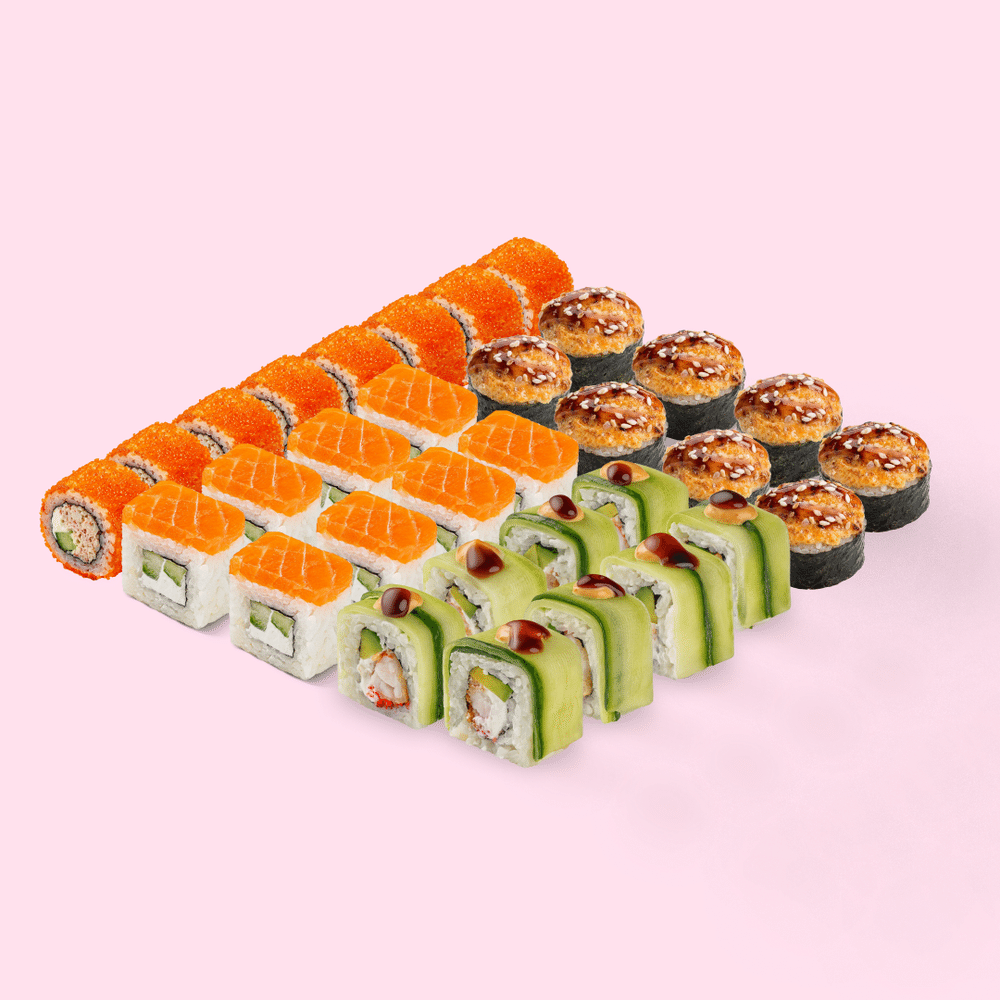 Когда хочется просто нормального вкусного сета. Только проверенные хиты и вкус классики. Н.Б.С. – самый нормальный сет в меню! Состав: Ролл филадельфия Лайт, Калифорния с крабом, Гриль маки, Эби грин ролл.
