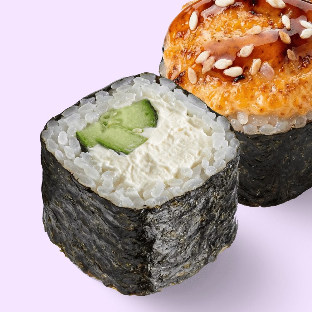 Свежий ролл с хрустящим огурцом и сливочным сыром, запечённый сверху. Вкусный и горячий! Состав: нори, рис, огурец, сливочный сыр, запечённая шапка, унаги соус, кунжут