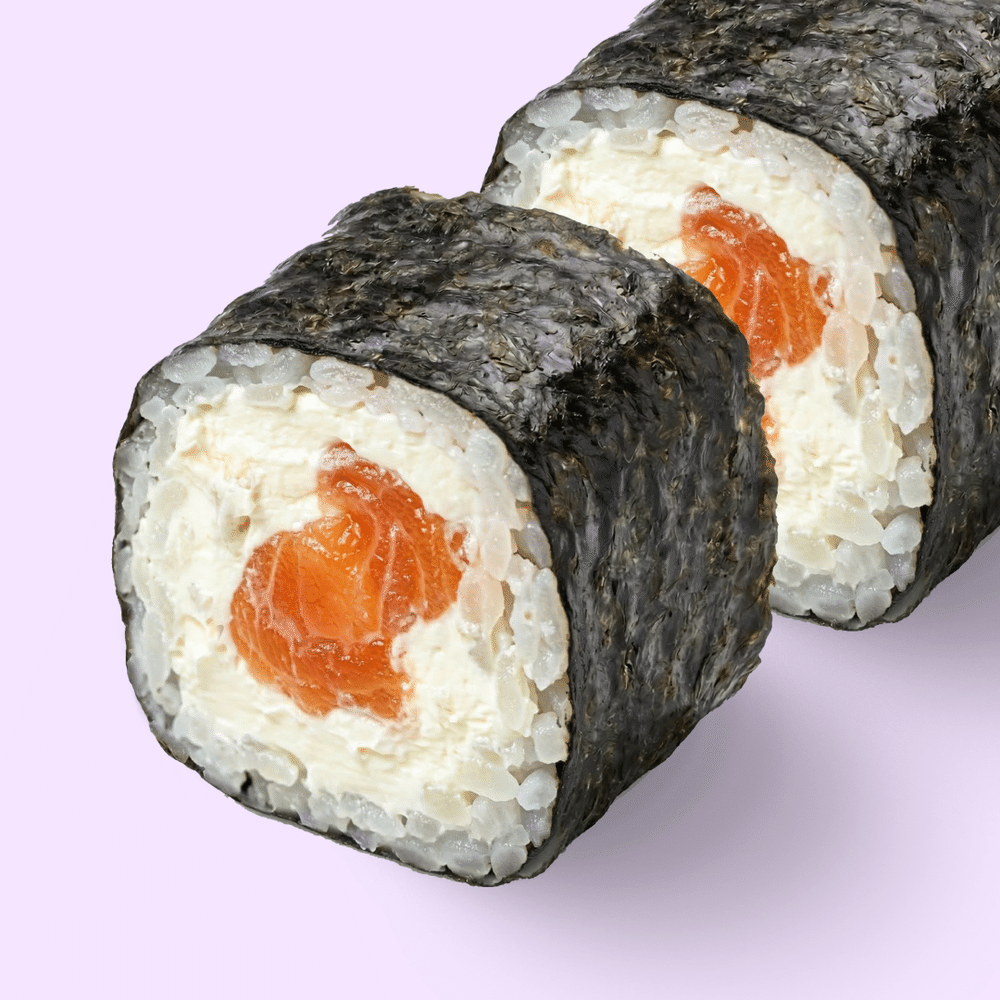 Насыщенный ролл с лососем и сливочным сыром. Отличный вариант для любителей рыбы. Состав: нори, рис, лосось, сливочный сыр